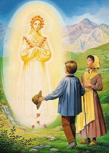 Vicino a La Salette, a 35 Km da Grenoble, in Francia nel primo pomeriggio del 19 settembre 1846, la Vergine apparve a Massimino Giraud di 11 anni e Melania Calvat di 15 anni, mentre erano intenti a pascolare le mucche sul Monte Planeau, a 1800 metri d’altezza. Il colloquio con i veggenti avviene prima in francese poi in dialetto, ed infine ancora in francese. La Vergine consegna ai veggenti dei messaggi e un segreto dai contenuti apocalittici. Ella chiede preghiera, penitenza e la santificazione del giorno festivo, mezzi indispensabili per vivere cristianamente ed ottenere il beneplacito di Dio. Il peccato è l’origine del male che grava sul mondo e che porta ogni sorta di danno e di sofferenza.