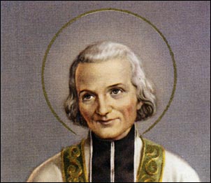 Jean-Marie Baptiste Vianney, conosciuto come il "Curato d'Ars", nacque a Dardilly, 8 maggio 1786. Figlio di poveri contadini, raggiunse la meta del sacerdozio superando molte difficoltà, tra le quali ci furono problemi nello studio, soprattutto nell'apprendimento del latino. Ordinato presbitero, divenne vicario, a Ecully, dell'abate Charles Balley, che l'aveva molto sostenuto durante i difficili anni di studio; alla morte di Balley fu mandato ad Ars dove spese la propria vita nell'evangelizzazione, nella pratica del sacramento della penitenza, nell'assidua preghiera e nella celebrazione della Messa. Morì nel 1859 quando Ars era ormai divenuta luogo di pellegrinaggio, essendosi sparsa per tutta la Francia la sua fama di confessore e direttore spirituale. Beatificato nel 1905 da papa Pio X, è stato proclamato santo da papa Pio XI nel 1925 e dichiarato patrono dei parroci. Additato come modello per i presbiteri da papa Giovanni XXIII nell'enciclica Sacerdotii Nostri Primordia, è stato ricordato con uno speciale anno sacerdotale, per il centocinquantenario della sua morte, nel 2009 da papa Benedetto XVI.