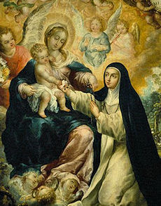 «Non si può esprimere a parole - si legge negli Atti di canonizzazione di santa Rosa - l’affetto che nutriva per la devozione del rosario. Le pareva che, come in essa si associano l’orazione mentale e vocale, così ogni cristiano dovesse impegnarsi a predicarla sempre con la voce e mantenerla scolpita nel cuore». Si può dire che Rosa era di casa nella cappella del rosario della Chiesa domenicana di Lima. Passava molto tempo dinanzi all’immagine della beata Vergine a meditare i misteri del gaudio, dei dolori e delle glorie di Maria. Alla Madre di Dio ricorreva con immensa fiducia nelle difficoltà e nelle incertezze. Aveva sette anni, quando si rivolse, come figlia a madre, perché la illuminasse circa il suo nome: la chiamavano Rosa, ma non era questo il nome di battesimo. Maria la rassicurò: le disse che andava bene il nome di Rosa, ma doveva aggiungere «di Santa Maria». Da allora la santa si chiamò «Rosa di S. Maria», quasi a voler significare di appartenere con titolo speciale a Maria. Un’altra volta, in un momento decisivo della sua vita, essendo incerta se ubbidire all’invito del direttore spirituale che la indirizzava in un convento di agostiniane o al suo vivo desiderio che la spingeva verso l’Ordine di san Domenico, si rivolse con fiducia alla beata Vergine e Maria le manifestò chiaramente la volontà di Dio; prese così l’abito di san Domenico. A Maria Rosa si rivolge spesso con grande familiarità. A lei ricorre nei momenti difficili e nelle tentazioni e subito ritorna il sereno nel suo animo. «Dopo Gesù, suo sposo dilettissimo, - scrive il p. Mortier - il cuore della santa si voleva con tenerezza alla Vergine Maria. Quanto amava la cappella del rosario, dove la Regina del cielo le aveva parlato e sorriso tante volte! Quante corone vi aveva recitato sotto lo sguardo materno di Maria! Rosa soleva passare molte ore davanti a questa statua: la guardava, le sorrideva. Era una conversazione familiare, un cuore a cuore, perché la divina Madre le sorrideva a sua volta e non le negava mai uno sguardo amoroso.Tutta la città lo sapeva. Se si voleva ottenere una grazia, la guarigione di qualche malato, la conversione di un’anima, subito si ricorreva a Rosa, che pregava, implorava, piangeva…». E, se la risposta di Maria ritardava, Rosa «insisteva, si lamentava dolcemente fino a che un segno grazioso di Maria o un lume interno non le avessero dato la certezza di essere esaudita». Sentendo prossimo il suo ritorno nella casa del Padre celeste, si prostrò per l’ultima volta dinanzi alla statua della beata Vergine del rosario e offrì se stessa a Dio, pronta ad accogliere qualsiasi sofferenza nell’anima e nel corpo. La preghiera fu esaudita e negli ultimi mesi di vita, soffrì atroci dolori. Era tuttavia sempre sorridente, perché sentiva di essere vicina a Maria. Quando morì. il 24 agosto 1617, la sua salma, per volontà del popolo, fu deposta vicino all’altare maggiore della Chiesa di S. Domenico; venne poi trasportata nella cappella del rosario a lei tanto cara.