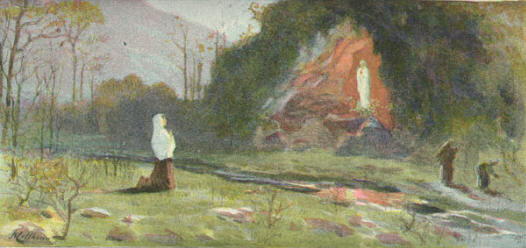 Al suo arrivo, Bernadetta trova già nella grotta la signora che,